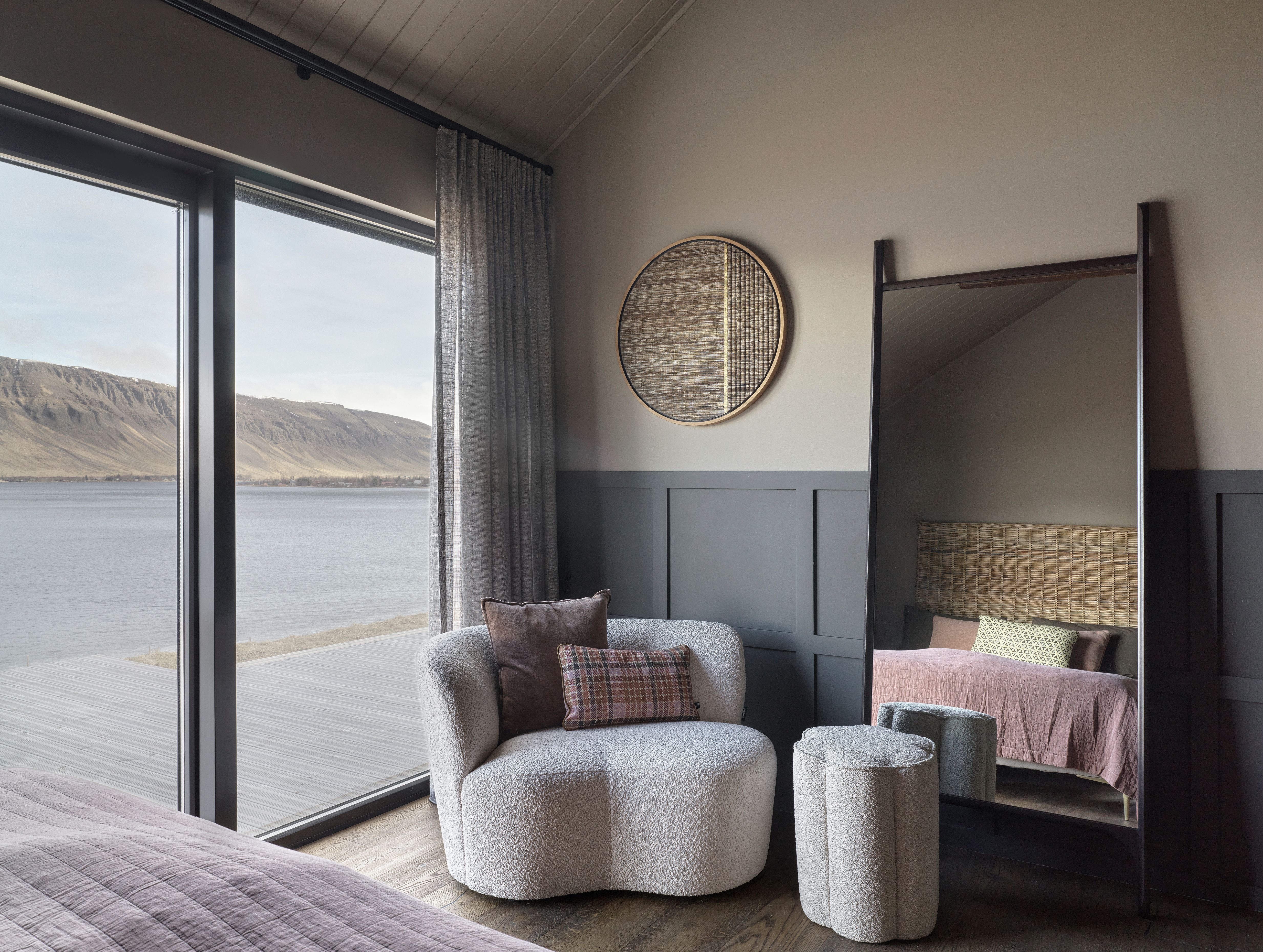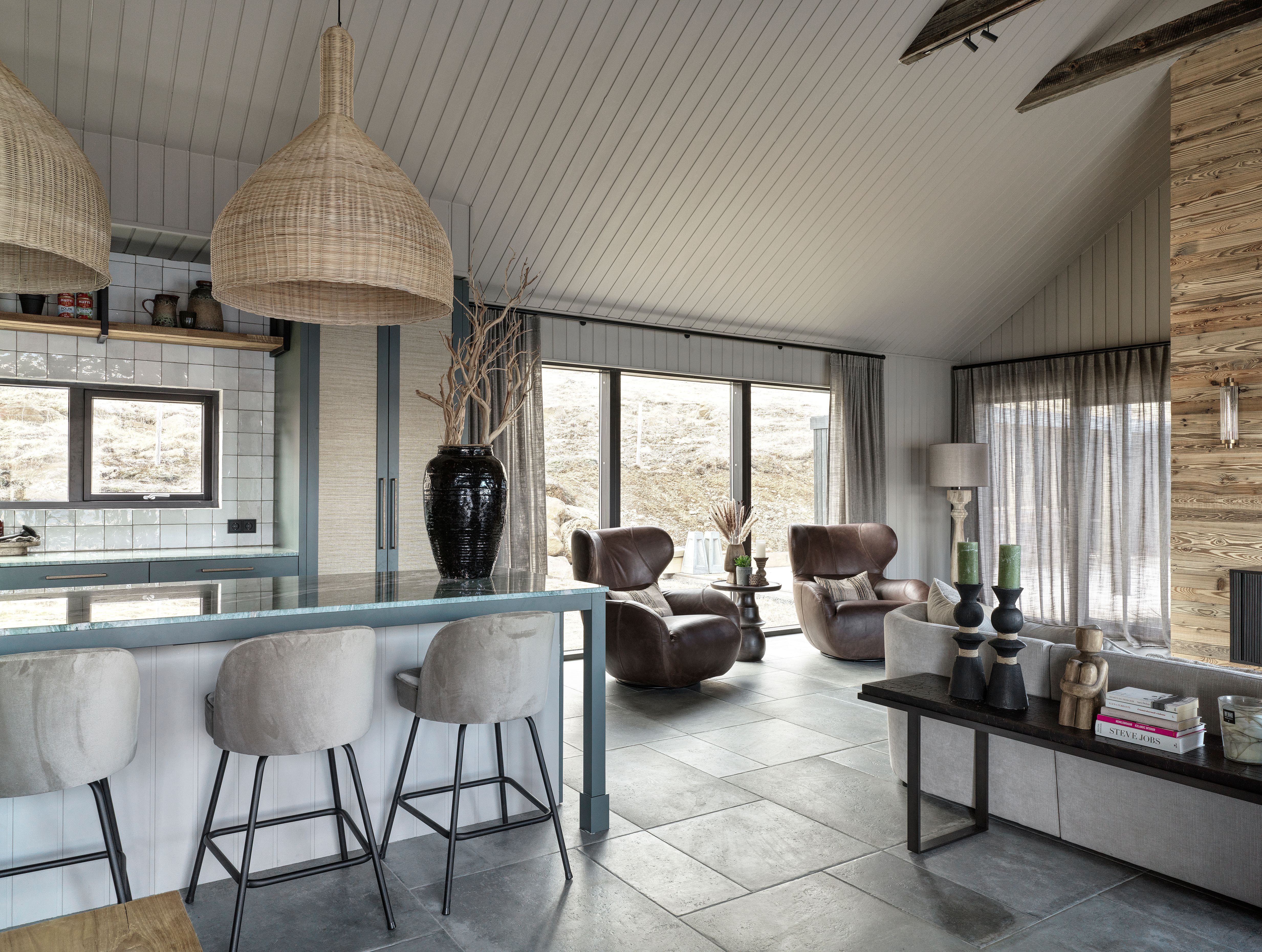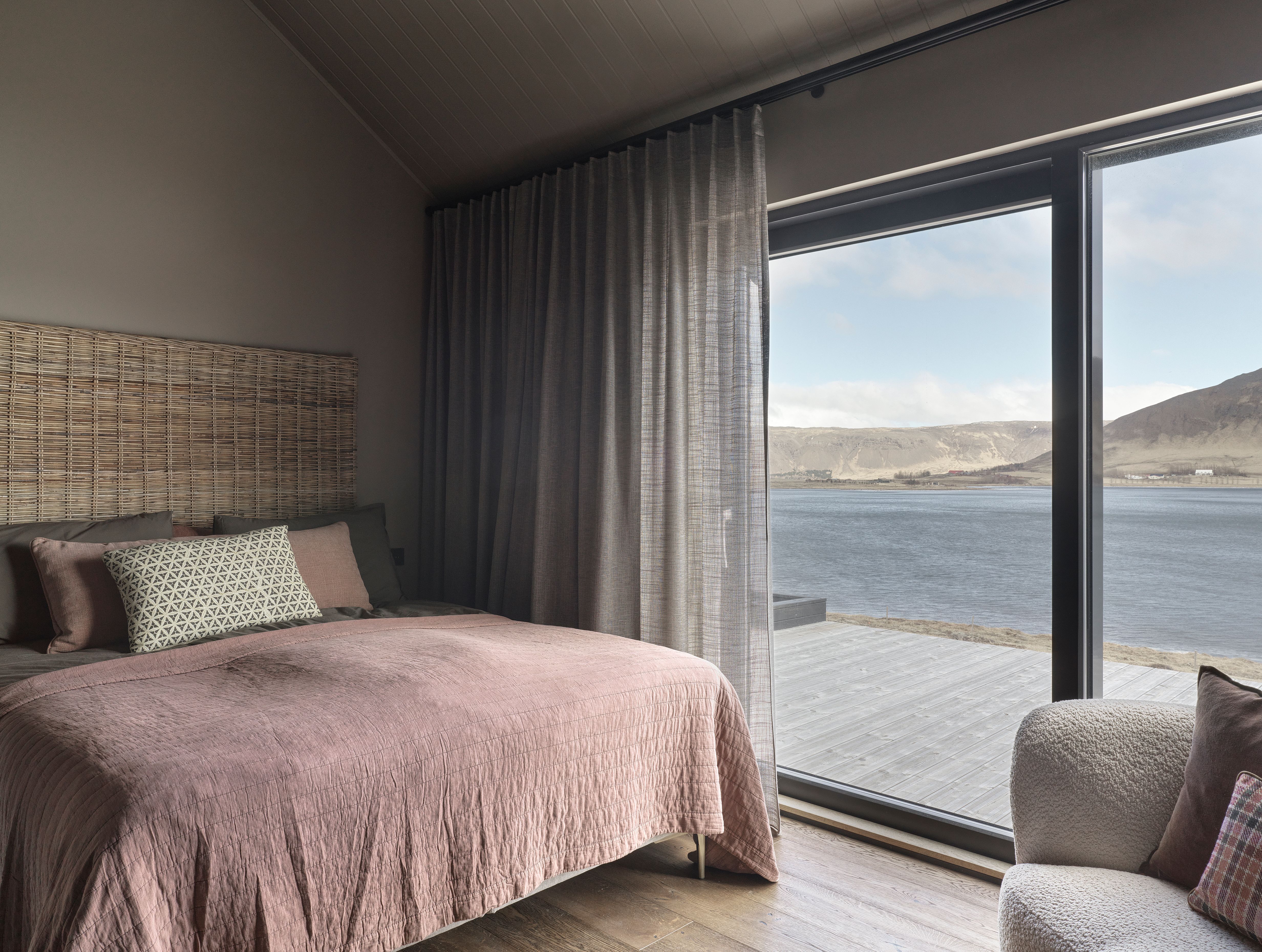 A summerhouse. Contemporary interior set within the icelandic landscape.