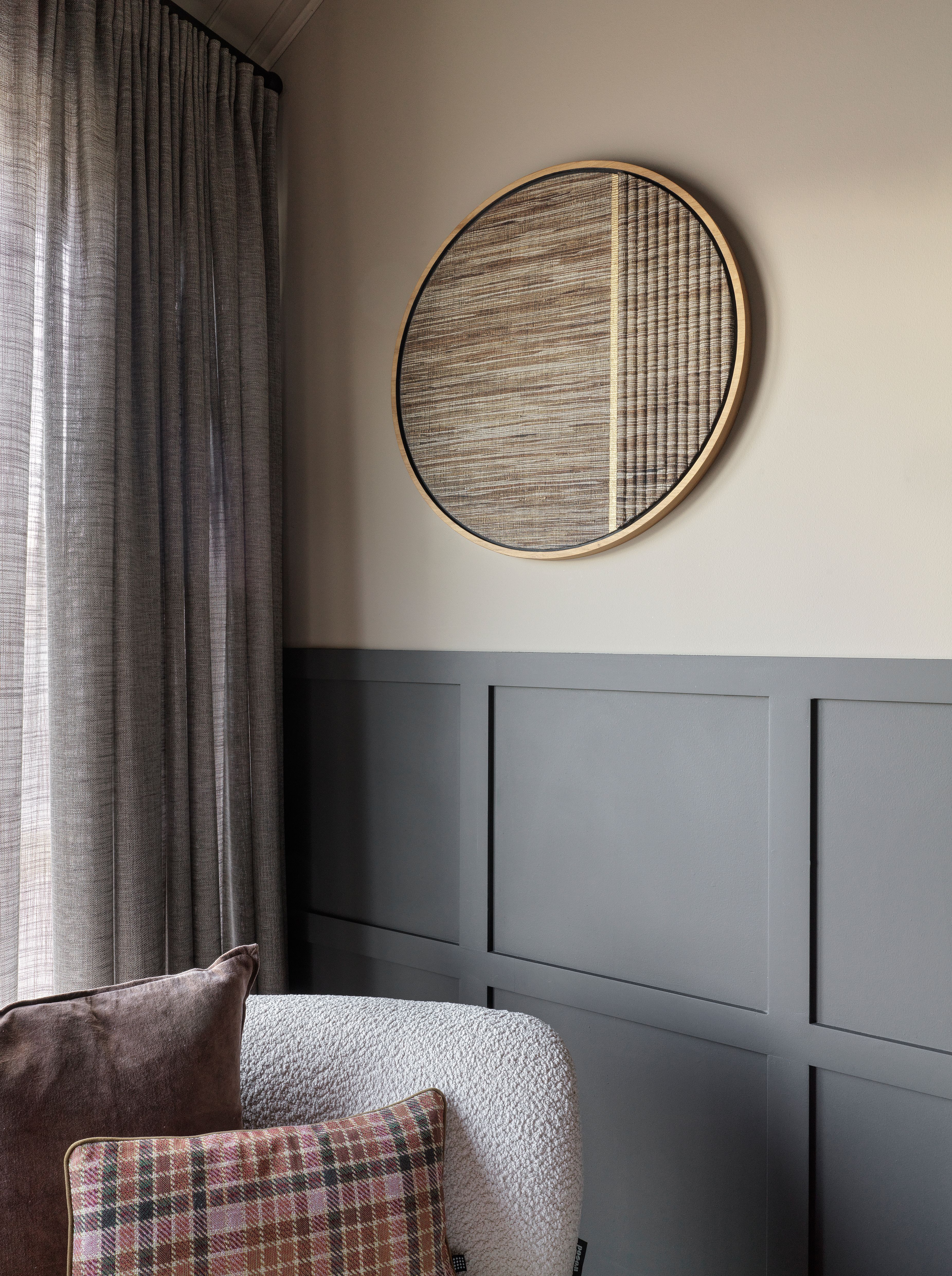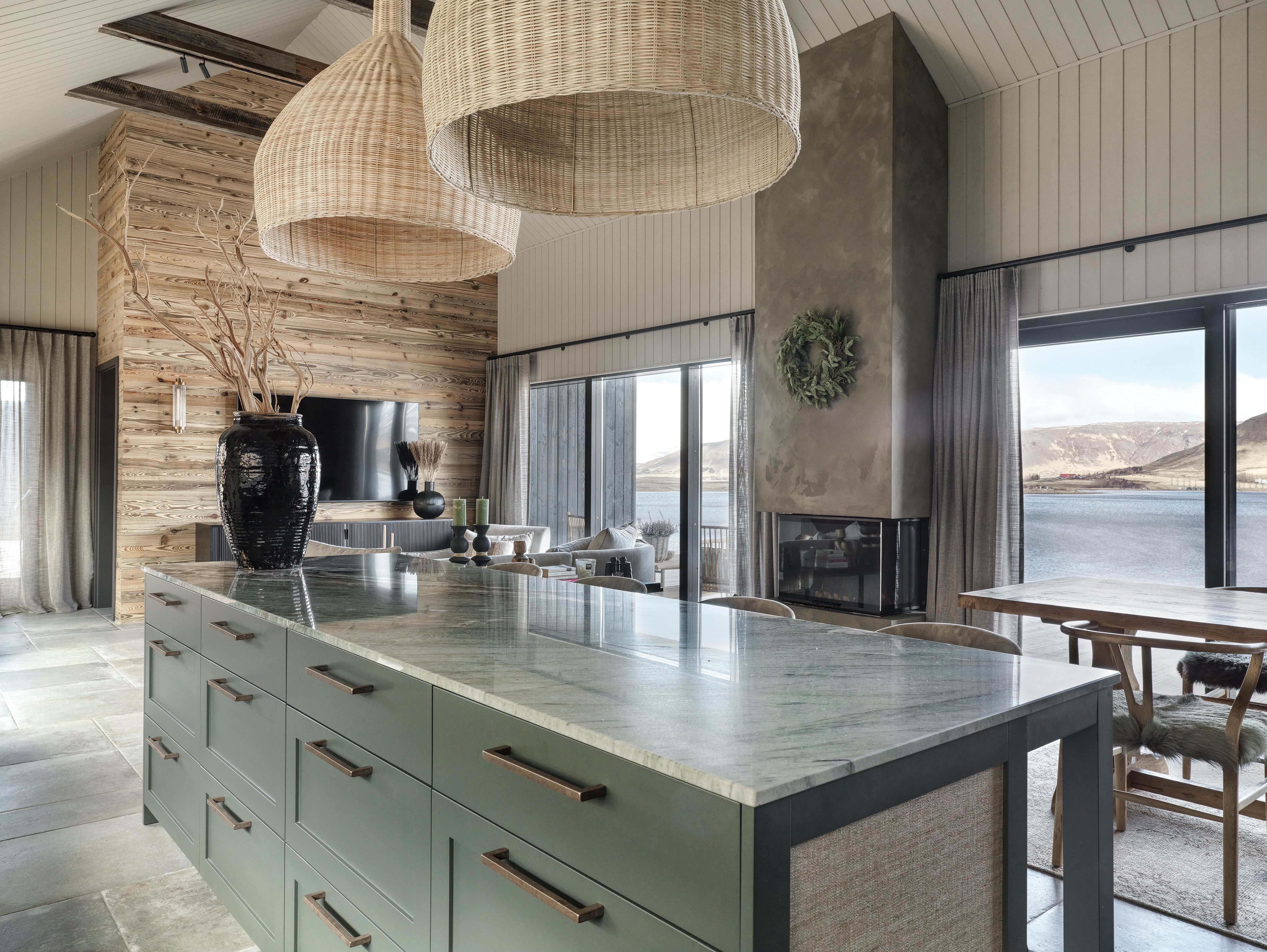 Furniture and objects were selected to balance comfort with simplicity. Sculptural lighting, natural fibers, and handcrafted details add character without overwhelming the space. The result is an interior that feels quiet, grounded, and closely connected to its surroundings. A place designed for slow living, conversation, and rest by the water.