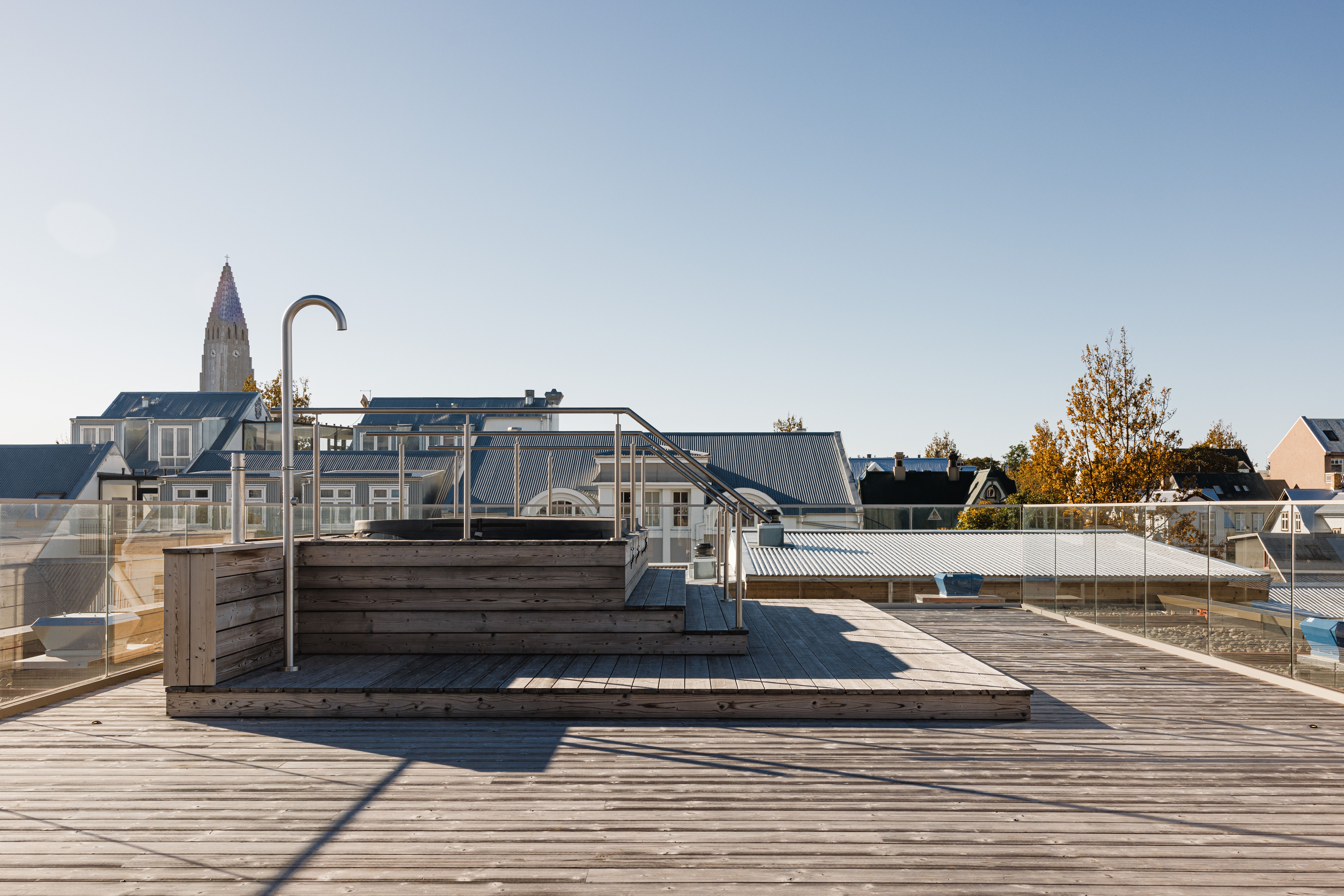 The project connects the interior experience to the surrounding city. Views across Reykjavík’s rooftops and toward Hallgrímskirkja become part of the spatial narrative, grounding the hotel within its urban context.