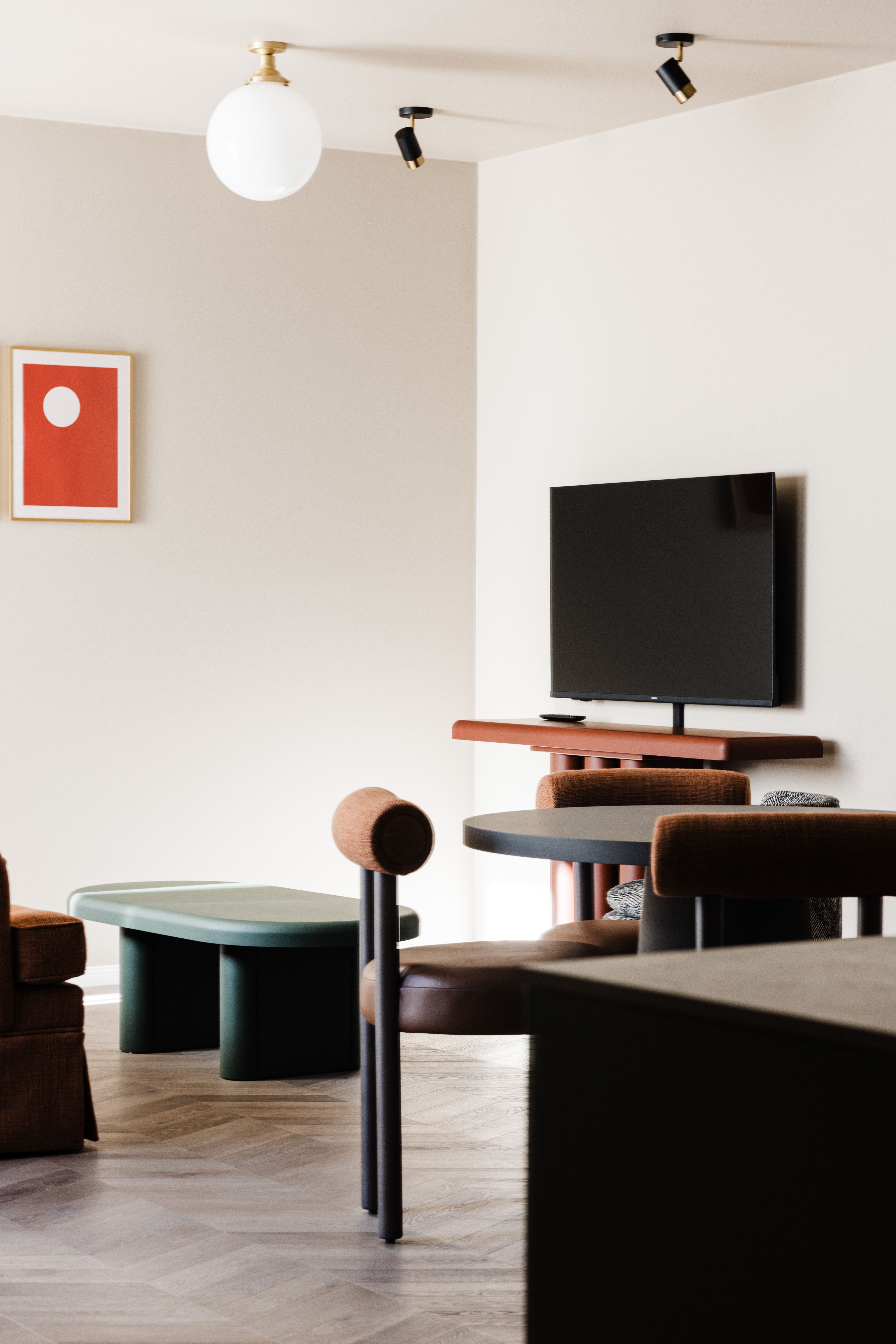 Public areas are designed to feel both elegant and comfortable, with soft lighting and warm colors creating an inviting setting for guests to relax. Custom furniture, leather seating, and subtle decorative objects contribute to an atmosphere that feels personal rather than formal.